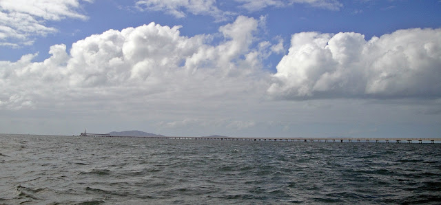 This is on Stephens looking towards Sisters at spring low tide, looking back over the same stretch of water. It was quite interesting walking over the exposed reef and checking out the few live corals, seaweeds and sundry slimy marine animals trapped in the pools, mud and dead corals of the inter-tidal range. Not pretty, but interesting.